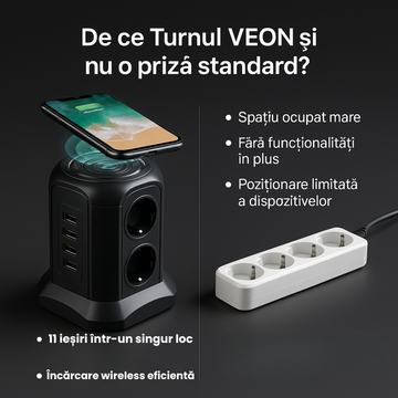 Produsele obișnuite oferă doar prize. VEON oferă ordine, stil și tehnologie — totul într-un turn elegant, creat pentru case moderne și oameni exigenți.