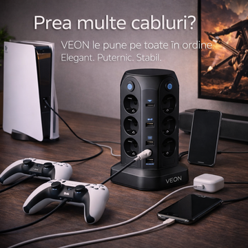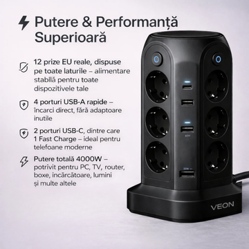 Produsele obișnuite oferă doar prize. VEON oferă ordine, stil și tehnologie — totul într-un turn elegant, creat pentru case moderne și oameni exigenți.